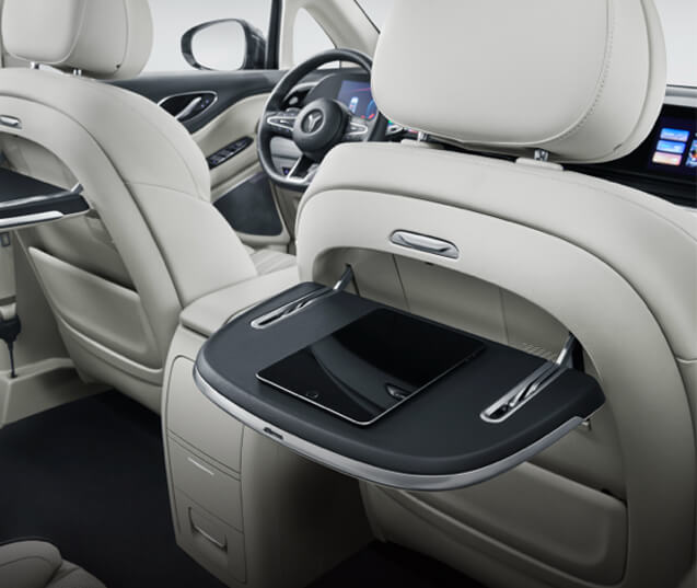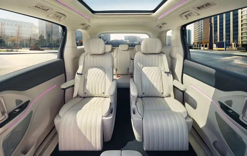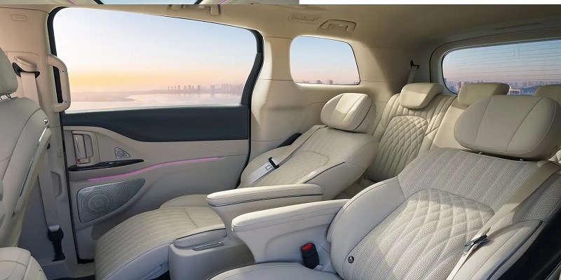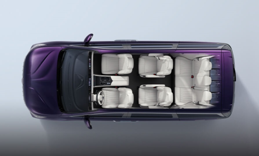 چیدمان صندلیها به صورت 2+2+3 انتخاب شده که آرایشی رایج در مینیونهای لوکس است. صندلیهای مستقل میانی معمولا بیشترین سطح رفاه را ارائه میدهند و حس سفر درجه یک را القا میکنند. علاوه بر این، سرنشینان عقب به امکاناتی نظیر تنظیمات سیستم تهویه و کنترل برخی عملکردهای صندلی دسترسی دارند که تجربهای مستقل و راحتتر را برای آنها رقم میزند.