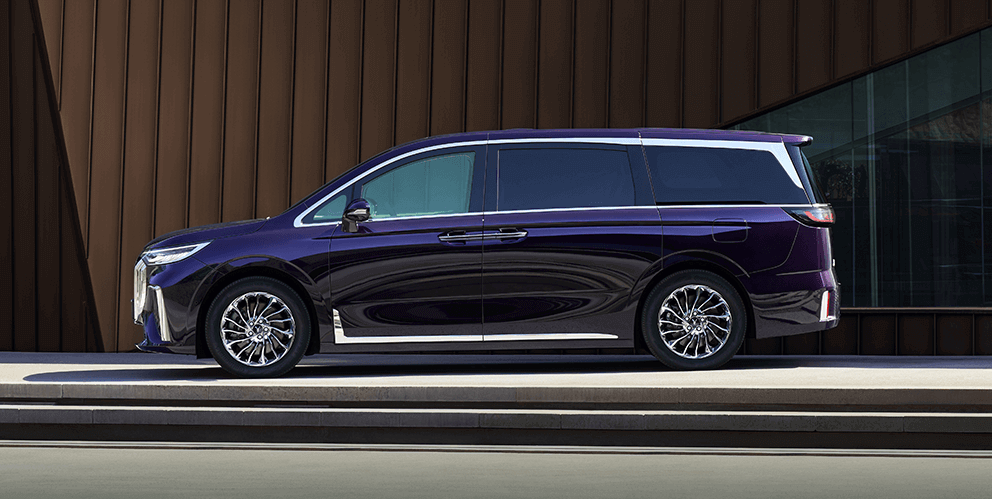 در Voyah Dream استفاده از سقف مشکی در کنار ستونهای تیره، جلوهای موسوم به «سقف شناور» ایجاد کرده که تضاد رنگی جذابی میان بخش فوقانی و بدنه به وجود میآورد. این ترفند طراحی، ضمن سبکتر نشان دادن حجم کلی خودرو، به آن حالوهوایی مدرن میبخشد. همچنین رینگهای 20 اینچی چندپره با پرداخت کرومی، چهره لوکس و مجللی به این ام پی وی بخشیده است. در مجموع، نمای کناری این خودرو تصویری از یک MPV لوکس آسیای شرقی ارائه میدهد.