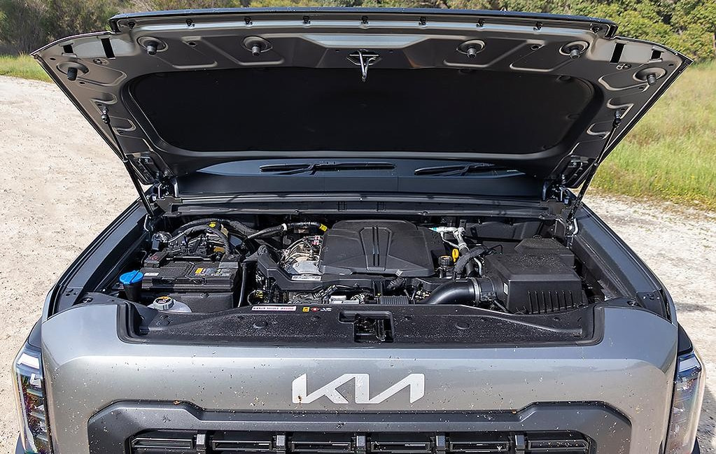 پیشرانه پیکاپ کیا تاسمان از نوع ۲.۵ لیتری چهار سیلندر توربوشارژ با فناوری پیشرفته تزریق مستقیم سوخت (GDI) است که توانایی تولید ۲۸۱ اسب بخار قدرت و ۴۲۱ نیوتنمتر گشتاور را دارد. این ارقام نهتنها تاسمان را در جایگاه بالاتر از اکثر پیکاپهای چینی بازار ایران قرار میدهد، بلکه از نظر بازدهی و شتاب نیز در حد و اندازه رقبای ژاپنی ظاهر میشود. قدرت موتور از طریق گیربکس اتوماتیک ۸ سرعته (AT) به محور عقب منتقل میشود و در شرایط آفرودی با فعال شدن سیستم دو دیفرانسیل هوشمند (4WD) و دنده کمکی به تمامی چرخها توزیع میگردد.