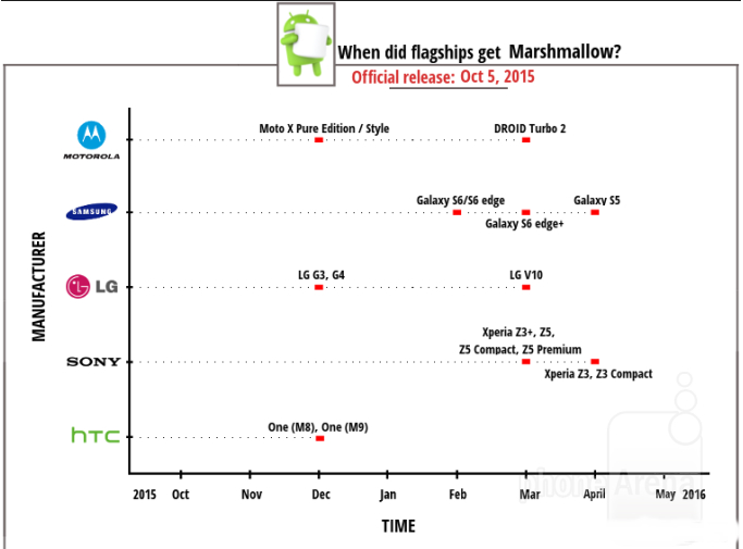 همانطور که کاملا مشخص است دیگر موج عظیمی از آپدیت اندروید مارشمالو این شرکت به پرچمداران یا سایر محصولات ارائه نمیشود تا کم کم آماده نسخه جدید باشیم. علاوه بر این سال گذشته اکثر شرکتها تاخیر عجیبی در ارائه اندروید مارشمالو برای محصولات خود داشتند. بهعنوانمثال شرکت موتورولا که همیشه در عرضه آپدیت با کمترین تاخیر اقداماتی انجام میداد به نسبت نسخههای کیت کت و آب نبات چوبی، در ارائه مارشمالو تاخیر سه ماهه داشت!