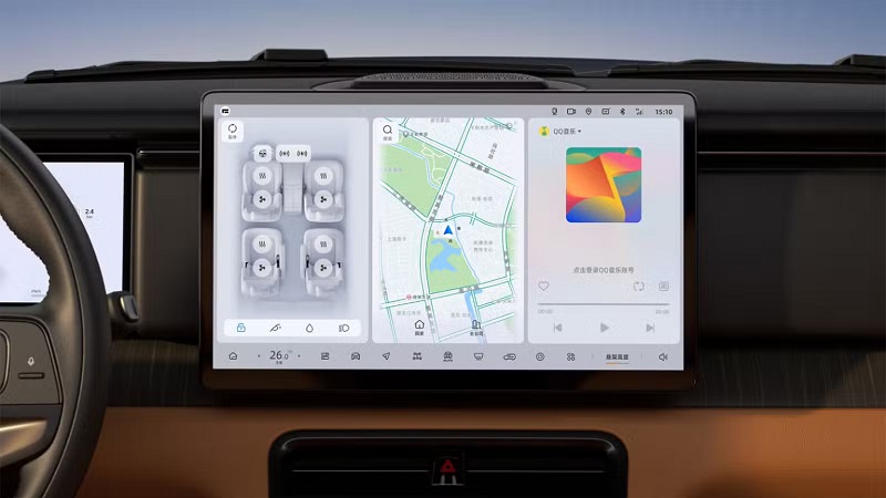 ابتدای این مطلب اشاره کردیم که راکس آداماس یک شاسی بلند لوکس است و این شکوه و جلال را میتوان در کابین داخلی مشاهده کرد. عمده تمرکز طراحان نمای داخلی معطوف به صفحهنمایشهای متعدد بوده و به همین خاطر سراغ یک نمایشگر 12.3 اینچی برای راننده و یک نمایشگر عمودی 15.7 اینچی در مرکز داشبورد رفتهاند. علاوه بر دو صفحه نمایش فوق، یک نمایشگر 9 اینچی تاشو نیز برای سرنشینان عقب تعبیه شده تا بتوانند از تنظیمات مختلف آن لذت ببرند.