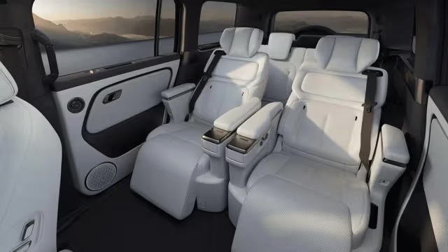 متریال داشبورد و رودریها از چرم و ترکیب آن با چوب بوده و کافی است از نورپردازی محیطی استفاده کنید تا احساس گرما و مجلل بودن کابین را درک کنید. جنس چرم صندلیها باکیفیت است و صندلیهای ردیف دوم به مدل کاپیتانی معروف شده و مجهز به آپشنهایی از قبیل گرم کن، تنظیم برقی و ماساژور هستند.