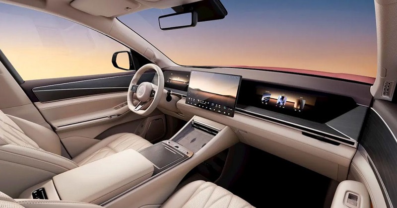 داخل کابین بی وای دی گریت تانگ، صندلیها با چینش ۲+۲+۳ تزئین شدهاند. ردیف دوم شامل صندلیهای مستقل گرانش صفر با تکیهگاههای پا، صفحه نمایش سرگرمی سقفی، میزهای تاشو و محفظههای نگهداری گرم و سرد است. ردیف سوم سه صندلی الکتریکی قابل تنظیم با گرمکن دارد. کابین خودرو ترکیبی از نمایشگر راننده، صفحه مرکزی شناور و صفحه سرگرمی سرنشین جلو را ارائه میدهد. سیستم شاسی Yun‑Nian A تعلیق بادی دو محفظهای را با پیشبینی مسیر جاده ترکیب میکند و سخت افزار لیدار سقفی نیز نشان میدهد که خودرو از سیستمهای پیشرفته کمک راننده بهره میبرد.