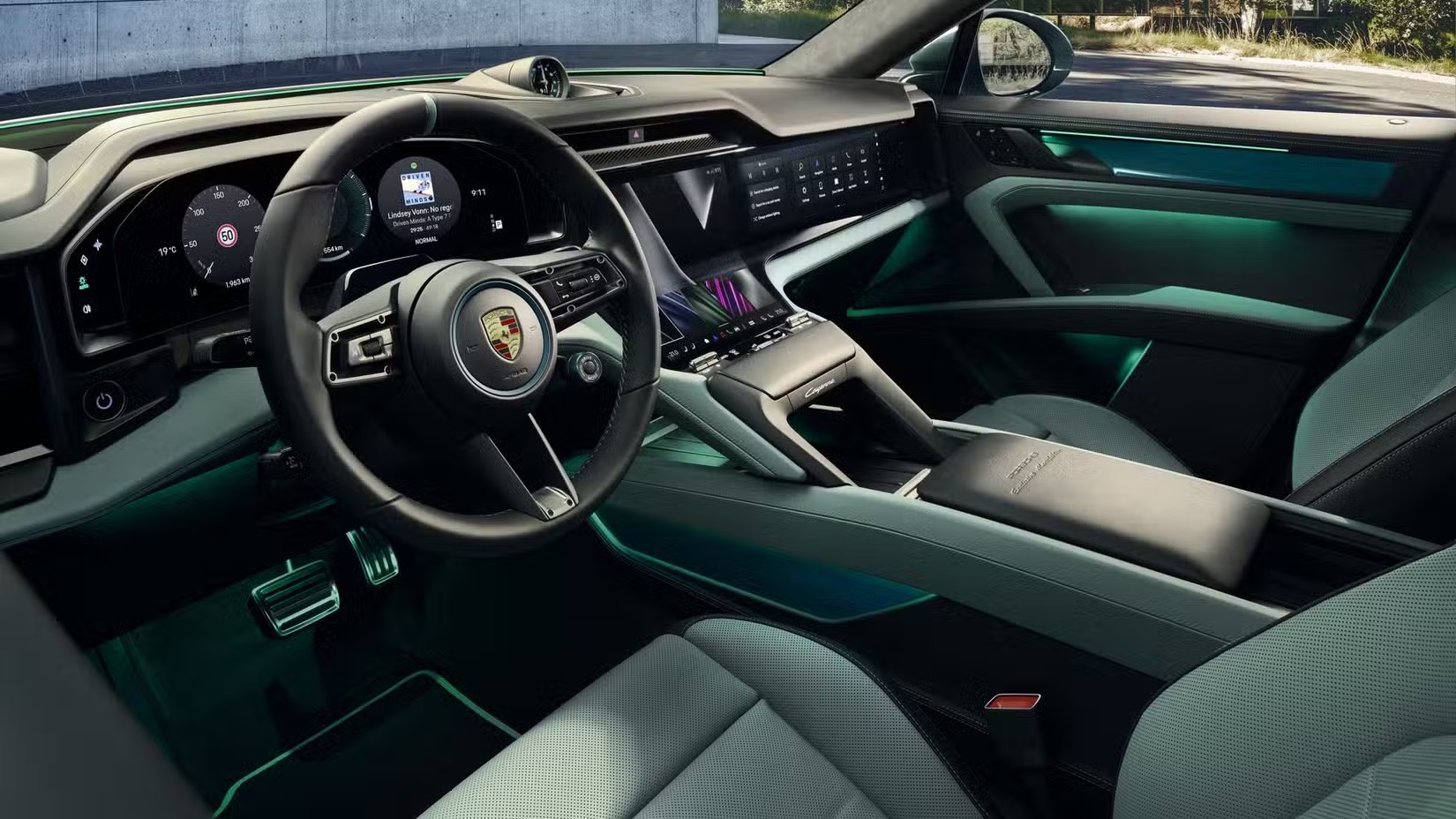 پورشه همچنین یک پکیج جدید طراحی داخلی با نام Exclusive Manufaktur Interior Style Package را برای همه مدلهای کاین الکتریکی معرفی کرده که با کاین اس الکتریکی آغاز میشود. این پکیج شامل چرم دو رنگ مشکی و سبز Delgada برای صندلیها، تریم درها و حتی کمربندهای ایمنی است و با تریم آلومینیومی و دوخت سبز تکمیل میشود. این پکیج به طور خاص برای هماهنگی با رنگ بیرونی Mystic Green Metallic طراحی شده است.