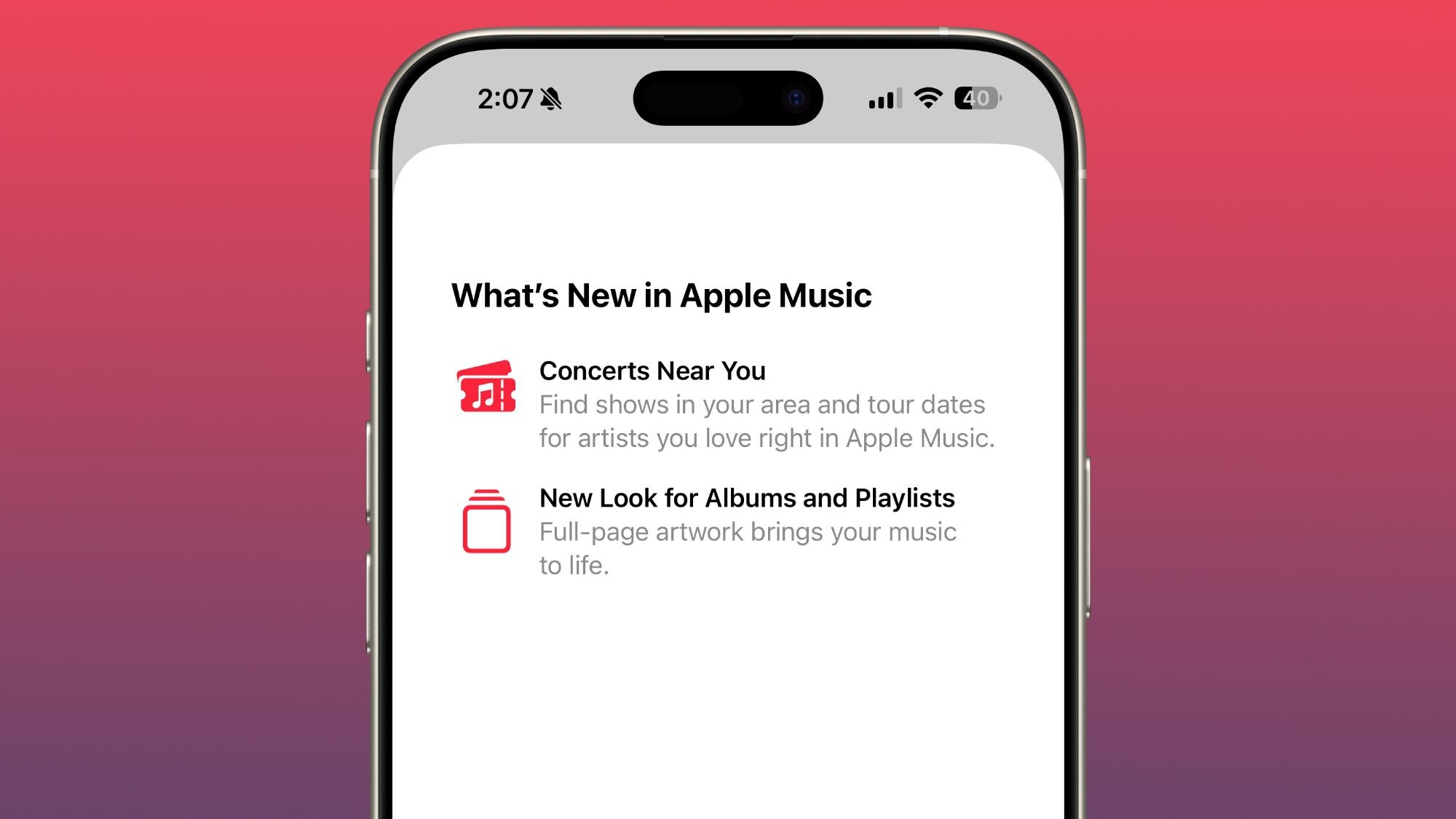 اپل موزیک (Apple Music): قابلیت «کنسرتهای اطراف شما» (Concerts Near You) برای یافتن اجراهای محلی و تاریخ تور هنرمندان محبوب اضافه شده است. طراحی آلبومها و پلیلیستها با کاورهای تمامصفحه بازطراحی شده و اکنون میتوان یک آهنگ را بهطور همزمان به چندین پلیلیست اضافه کرد.