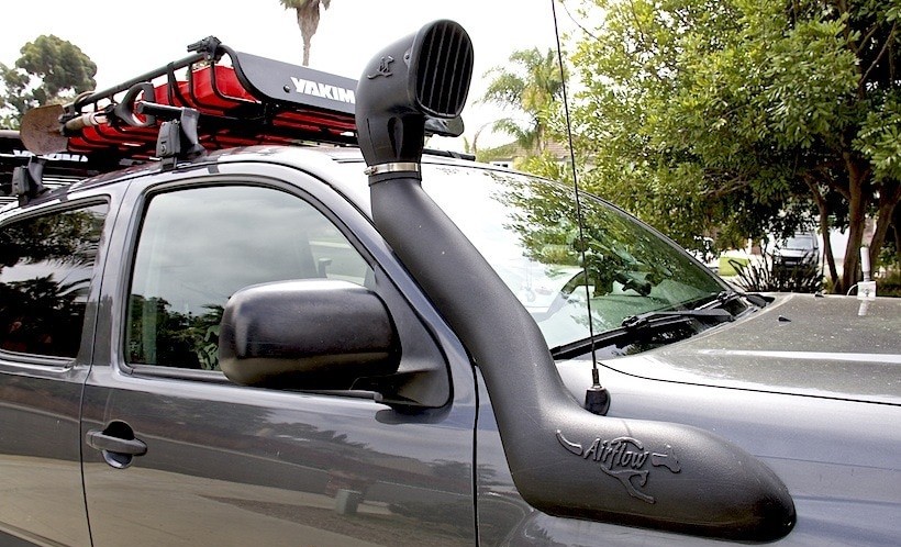| اسنورکل هوا (Air Intake Snorkel) | لولهای برای بالا بردن ورودی هوا موتور به منظور عبور از آب عمیق (تا ۱ متر) | کنار ستون A یا کاپوت | جلوگیری از ورود آب به موتور، بهبود عملکرد در گردوغبار | ظاهر غیراستاندارد، افزایش مقاومت هوا و کمی کاهش قدرت موتور |