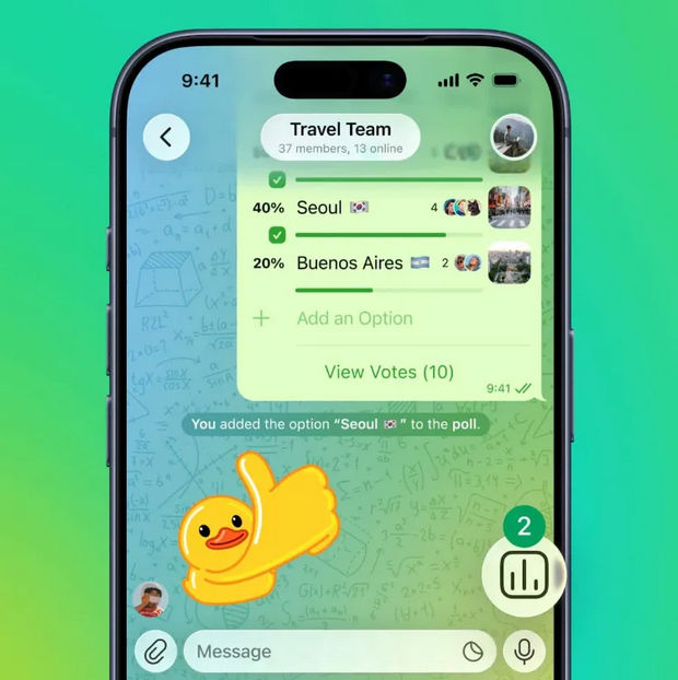 سیستم نظرسنجی تلگرام حالا انعطافپذیرتر شده است. مدیران میتوانند برای رأیگیریها محدودیت زمانی تعیین کنند، گزینههای قابل ویرایش ایجاد کنند یا حتی امکان مشاهده نتایج بدون مشارکت در رأیگیری را فعال سازند.