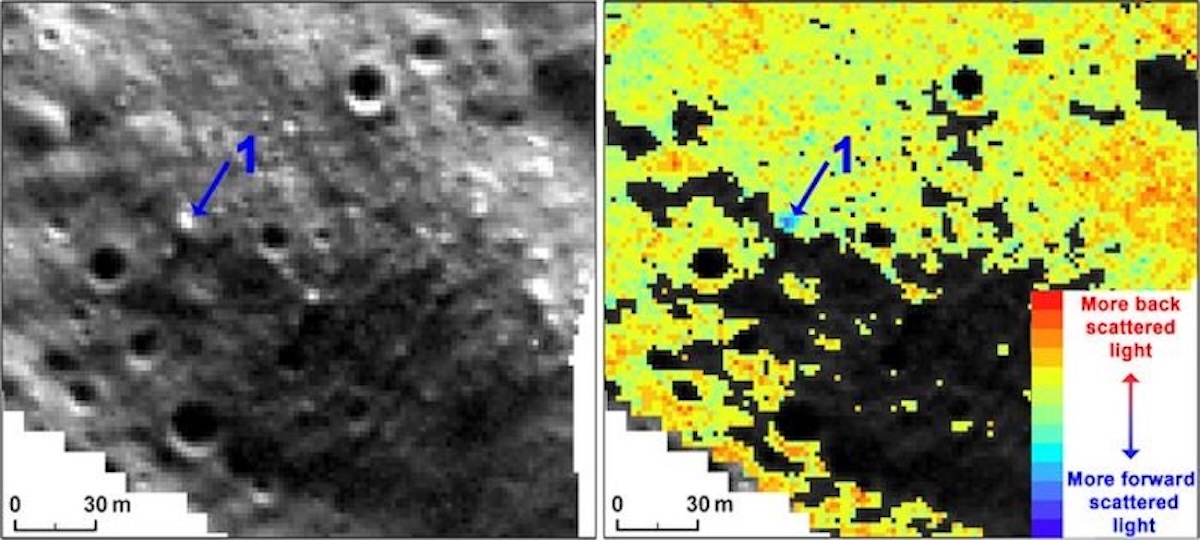 برای شناسایی یخ جامد، محققان روی دو ویژگی کلیدی نور آن تمرکز کردند: بازتاب بالاتر در طول موجهای مرئی و پراکندگی نور به جلو که در مقایسه با ریگ ماسه سطح ماه قابل تشخیص است. با تغییر زاویه دید دوربین و اندازهگیری تغییرات روشنایی سطح، این اثرات قابل شناسایی هستند. ستارهشناسان معتقدند که یخ ماه احتمالا خالص نیست و به شکل مخلوطهایی با ریگ ماسه در نسبتهای مختلف ظاهر میشود. بسته به درصد یخ موجود، این مخلوطها الگوهای بازتاب و پراکندگی متفاوتی از خود نشان میدهند.