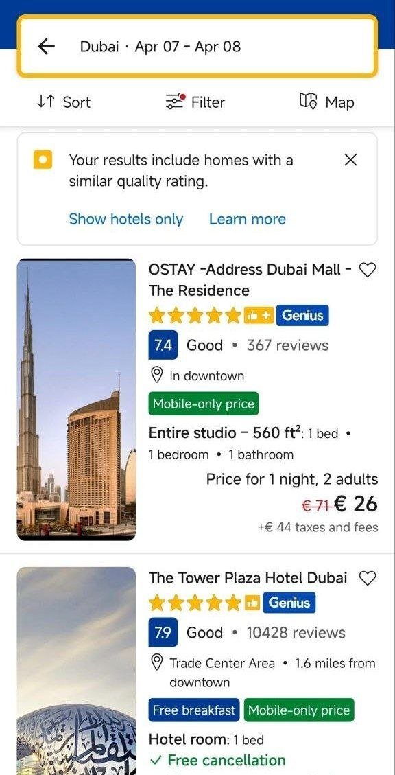 تصاویر منتشر شده از پلتفرمهای رزرو آنلاین نشان میدهد که هزینه اقامت برای یک شب در هتلهای مشهوری نظیر OSTAY – Address Dubai Mall که در مرکز شهر واقع شده و دسترسی عالی به برج خلیفه دارد، به رقم باورنکردنی ۲۶ یورو رسیده است. این در حالی است که قیمتهای قبلی و ارزش واقعی این هتلهای لوکس امارات بسیار بالاتر از این ارقام بوده است.