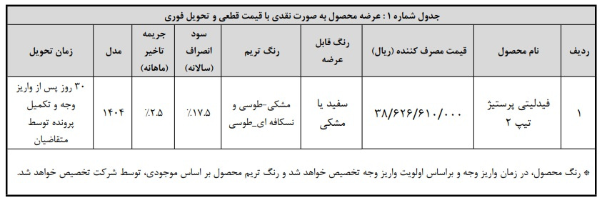 - شرایط فروش نقدی فیدلیتی پرستیژ در فروردین 1405 اعلام شد