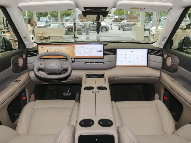 داخل کابین LS8، مجموعهای از فناوریهای دیجیتال خودنمایی میکند. یک نمایشگر عظیم ۲۷.۱ اینچی با وضوح 5K در مرکز و یک نمایشگر ۱۵.۶ اینچی 3K برای سرنشین جلو تعبیه شده است. سیستم اطلاعات و سرگرمی توسط تراشه قدرتمند کوالکام 8295P مدیریت میشود. از ویژگیهای رفاهی منحصربهفرد این خودرو شاسی بلند میتوان به صندلیهای مجهز به ماساژور، گرمکن و تهویه در هر دو ردیف، یخچال ۱۲.۳ لیتری با قابلیت انجماد و همچنین سیستم گرمایش کف کابین اشاره کرد که تجربهای مشابه یک خانه متحرک را برای سرنشینان تداعی میکند.