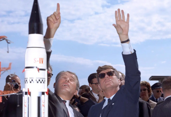 در سخنرانی مشهور سال ۱۹۶۲، جان اف. کندی، رئیسجمهور وقت آمریکا، اعلام کرد که این کشور تصمیم دارد در همان دهه به ماه برود. با این حال، کندی پیش از آن از مهندسان ناسا درباره امکان اعزام انسان به مریخ پرسیده بود. فضانورد باز آلدرین بعدا فاش کرد که طبق محاسبات ناسا، مریخ با فناوری آن زمان بسیار دور بود و ماه هدف واقعبینانهتری محسوب میشد. کندی در نهایت روی ماموریت ماه تمرکز کرد و این هدف در سال ۱۹۶۹ محقق شد.