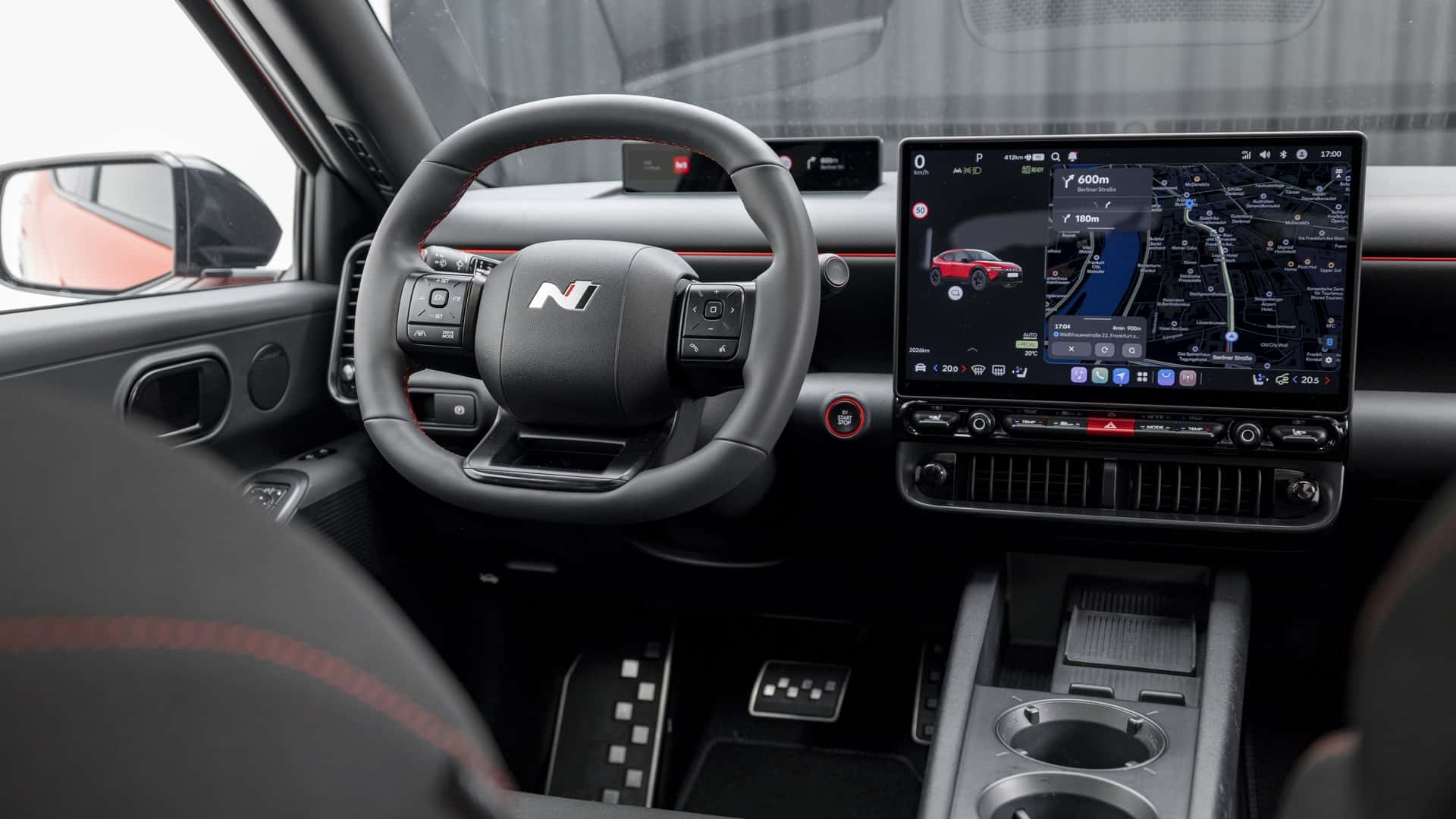 سیستم Pleos Connect مبتنی بر اندروید اتوموتیو اجرا میشود و Hyundai Ioniq 3 گزینههای متعددی از جمله سیستم صوتی Bose، تهویه دوگانه و نورپردازی داخلی LED را ارائه میدهد. فضای بار این هاچبک برقی هیوندای ۱۵.۶ فوت مکعب است که ۴.۲ فوت مکعب آن به محفظه ذخیرهسازی مگاباکس در زیر کف صندوق اختصاص دارد.