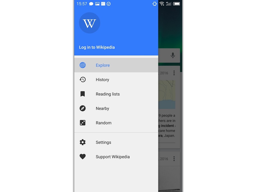 ویکی پدیا، دانشنامه آزاد، از برنامه اندرویدی خود با یک بازطراحی زیبا و ساده رونمایی کرد. هنگامی‌که شما برنامه ویکی پدیا را باز می‌کنید، ابتدا یک صفحه اکسپلور بر روی نمایشگر شما ظاهر خواهد شد. این صفحه شامل تصاویر پیشنهادی، مقالات مختلف، صفحات پرطرفدار و ترند شده و یک رندومایزر (randomizer) که به‌طور تصادفی به شما صفحاتی را نشان خواهد داد.