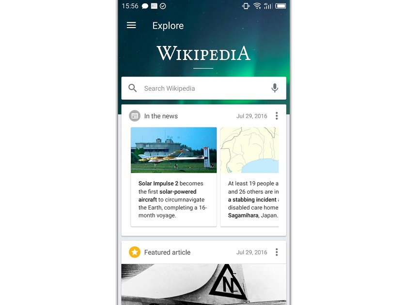 ویکی پدیا، دانشنامه آزاد، از برنامه اندرویدی خود با یک بازطراحی زیبا و ساده رونمایی کرد. هنگامیکه شما برنامه ویکی پدیا را باز میکنید، ابتدا یک صفحه اکسپلور بر روی نمایشگر شما ظاهر خواهد شد. این صفحه شامل تصاویر پیشنهادی، مقالات مختلف، صفحات پرطرفدار و ترند شده و یک رندومایزر (randomizer) که بهطور تصادفی به شما صفحاتی را نشان خواهد داد.