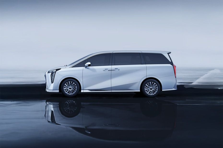 در نمای جانبی، جی ای سی M8 از یک پروفیل صاف و کشیده بهره میبرد که طول زیاد خودرو را به خوبی نشان میدهد. خط شانهای برجسته از چراغ جلو تا چراغ عقب امتداد یافته و حس استحکام و یکپارچگی بدنه را تقویت میکند. سقف نسبتا بلند با شیب ملایم به سمت عقب، فضای داخلی جادار را تضمین میکند و در عین حال، به شکل ظریف و متوازن خودرو کمک میکند. رینگهای آلومینیومی چند پره با طراحی مدرن و هماهنگ با تریم بدنه، ظاهری لوکس و هماهنگ ایجاد کرده و حرکت خودرو را در مسیرهای شهری و بزرگراهی پرابهت نشان میدهد.