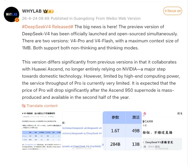 نسخه Pro با ۱.۶ تریلیون پارامتر، توانایی بالاتری دارد، در حالی که نسخه Flash یک مدل سبکتر با ۲۸۴ میلیارد پارامتر است. هر دو مدل دارای پنجره متنی ۱ میلیون توکنی هستند و از حالتهای فکری و غیرفکری پشتیبانی میکنند که به توسعهدهندگان اجازه میدهد بین سرعت و دقت در استدلال جابهجا شوند. این مدلها در حال حاضر فقط متن را پردازش میکنند، اما DeepSeek روی قابلیتهای چندوجهی برای پشتیبانی از تصاویر و ویدیوها کار میکند.