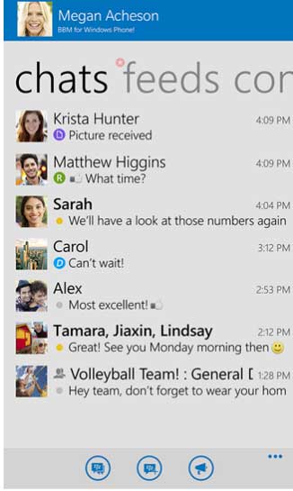 بلک بری نسخه آزمایشی مسنجر خود (BBM) را برای تمامی کاربران ویندوز فون عرضه کرد. این نرم افزار در سیستم عامل های اندروید و IOS عرضه شده بود و اکنون با همان رابط کاربری برای کاربران ویندوز فون منتشر شده است.