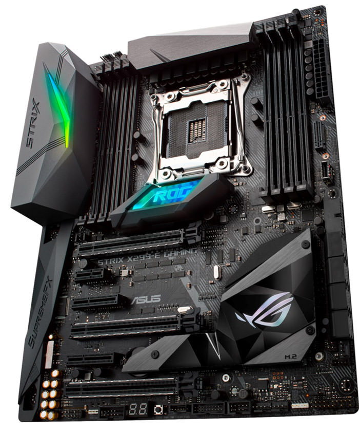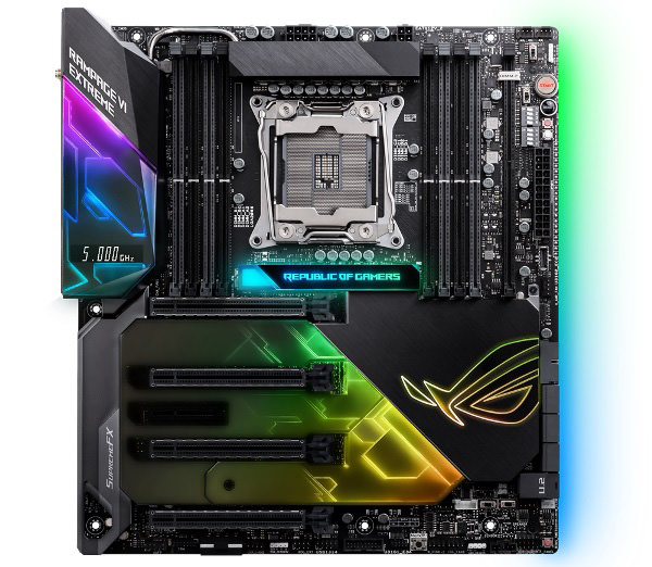 ایسوس در سری ROG، سه مدل را عرضه خواهد کرد. پیشرفتهترین مادربرد این سری Rampage VI Extreme نام دارد که با سیستم خنککننده مایع اختصاصی و شبکه فوق سریع همراه شده است. در این میان ایسوس توجه ویژهای به اورکلاکرها داشته و مادربرد منحصربهفرد Rampage VI Apex را معرفی کرده است. این مادربرد تمام نیازهای یک اورکلاکر حرفهای را پوشش خواهد داد و تنها برای شکستن رکوردهای جهانی ساخته شدهاست! در نهایت آخرین عضو سری ROG مادربرد Strix X299-E میباشد که قرار است همراهی مطمئن برای گیمرها باشد و تمام امکانات از قبیل شخصیسازیهای ظاهری و باطنی، سیستم خنککننده و تقریبا هر چیزی که یک گیمر به آن نیاز دارد را در اختیار آنها قرار دهد.
