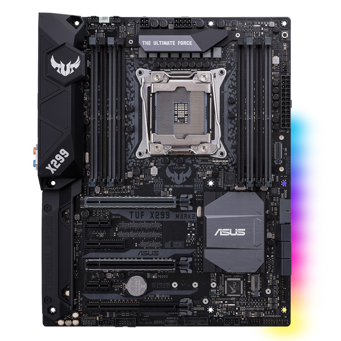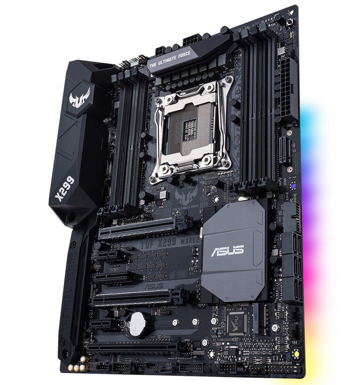 ایسوس مادربرد TUF X299 Mark 1 را نیز طراحی کرده که با قابلیتهای حفاظتی و آرمور بسیار قوی و امکانات خنککنندگی پیشرفته، خود را از تمام رقبا جدا کرده و سطح جدیدی از حفاظت و استقامت را در اختیار کاربران قرار میدهد. در عین حال مادربرد TUF X299 Mark 2 هم برای افرادی ساخته شده که در کنار استقامت و ماندگاری قصد دارند سیستم خود را از بقیه متمایز سازند. در آینده مادربردهای جدیدتری از این دو سری عرضه خواهد شد. مادربردهای سری TUF برای ماندگاری و استقامت بالا طراحی شدهاند و قادر هستند در مکانهایی با شرایط سخت همچنان به فعالیت خود ادامه دهند. اجزای این سری به طور ویژه انتخاب میشوند و نسبت به قطعات مادربردهای معمولی بسیار قدرتمندتر هستند. همچنین مادربردهای چیپست X299 ایسوس به نورپردازی Aura RGB مزین شده و قابلیتهای متنوعی نیز برای آنها تدارک دیده شده است. در آینده شاهد عرضه مادربردهای بیشتری از سری Prime و ROG خواهیم بود.