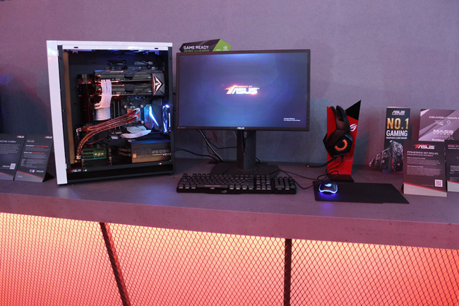 در بخش دیگری از غرفه، دو ست از جدیدترین سیستمهای ماد شده توسط معروفترین کیس مادر استرالیا و چین به نمایش گذاشته شده است. رده بالاترین تجهیزات مخصوص بازی ایسوس، تقریبا همه جا به چشم میخورد. تمام سیستمها به کیبورد ROG CLAYMORE، ROG Pugio، ROG Gladius II و چند ماوس پد جدید مانند ROG Edge مجهز شده و در جای جای غرفه ROG به چشم میخورند. در روز نخست نمایشگاه، هدستی بسیار سبک رونمایی شد که در این غرفه نیز حضور دارد. هدست ROG STRIX FUSION به عنوان سبکترین هدست 7.1 کاناله مخصوص بازی شناخته میشود. کارت گرافیک ROG GTX 1080 TI Poseidon نیز با پیکربندی SLI در یک کیس زیبا در این قسمت به چشم میخورد.