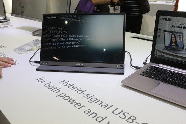 نازکترین نمایشگر ایسوس هم مدل جدیدی از سری MZ با نام MZ27AQ معرفی شد که تنها 7 میلیمتر ضخامت پنل آن است. تمام این مدلها از فناوری صوتی اختصاصی ایسوس بهره میبرند و تجهیزات صوتی این سری از نمایشگرها توسط تیم Harman Kardon تنظیم و طراحی شده است. همچنین نمایشگر قابل حمل ZenScreen MB16AC به یک لپ تاپ توسط رابط USB 3.1 Type C متصل شده است. این نمایشگر سبکترین و نازکترین نمایشگر قابل حمل جهان محسوب میشود.