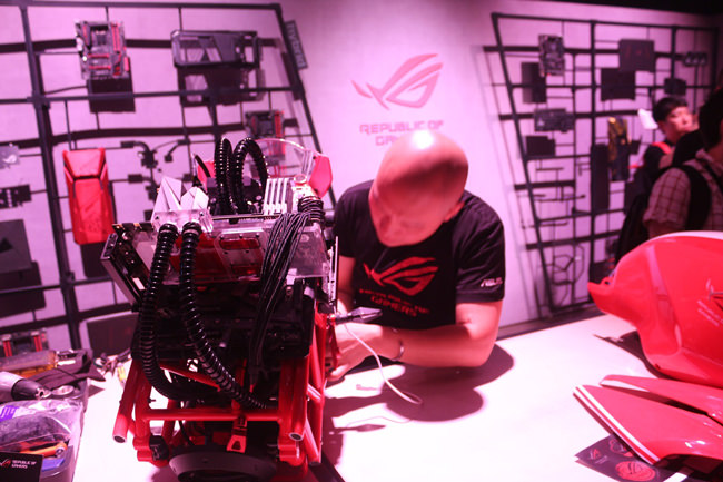 ROG همواره در مادینگ کیس نیز فعال و نوآور است و در غرفه ایسوس، دو نمونه از جدیدترین پروژههای این برند به نمایش گذاشته شد. ROG Moto-Monster و Halo Master Chief جدیدترین نمونههای این برند هستند و توسط مادرهای معروفی همچون Wei Zheng چینی، مشهور به Ai-Mask و Stephen Hoad استرالیایی، مشهور به Oz Modz ساخته شدهاند.