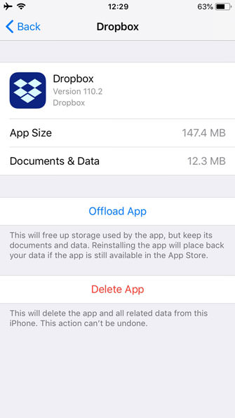 در این قسمت یک برنامه را انتخاب کرده و حجم بخش اسناد و داده را بررسی کنید (شما نمیتوانید به حجم برنامه کمک کنید). اگر حجم آن واقعا زیاد است، گزینه حذف برنامه (Delete App) را انتخاب و آن را تایید کنید؛ سپس به اپ استور (App Store) رفته و مجددا نسخه جدید را نصب کنید.
