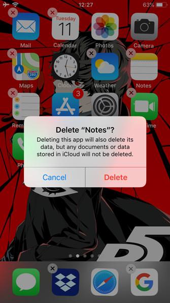 شما همچنین میتوانید برنامهها را با استفاده از روش مرسوم حذف کنید. برنامه دلخواه را بر روی صفحه اصلی خود انتخاب و بر روی آن فشار وارد کرده تا لرزش را احساس کنید. آیکون X روی برنامه را انتخاب کرده تا سریعا گزینه حذف را مشاهده کنید.