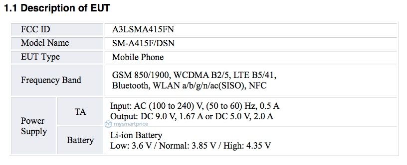همانطور که فهرست FCC نشان میدهد، این گوشی دارای شماره مدل SM-A415F/DSN است. تأییدیه بلوتوث نیز همین شماره مدل را نشان میداد. این فهرست تأیید میکند که گوشی گلکسی A41 سامسونگ از فناوری شارژ سریع 15 وات همراه با دو سیم کارت، وای فای دو باند و اتصال 4G پشتیبانی میکند. ابعاد این گوشی برابر با 149.8 در 69.8 میلیمتر است و به صورت پیشفرض همراه با اندروید 10 عرضه خواهد شد.