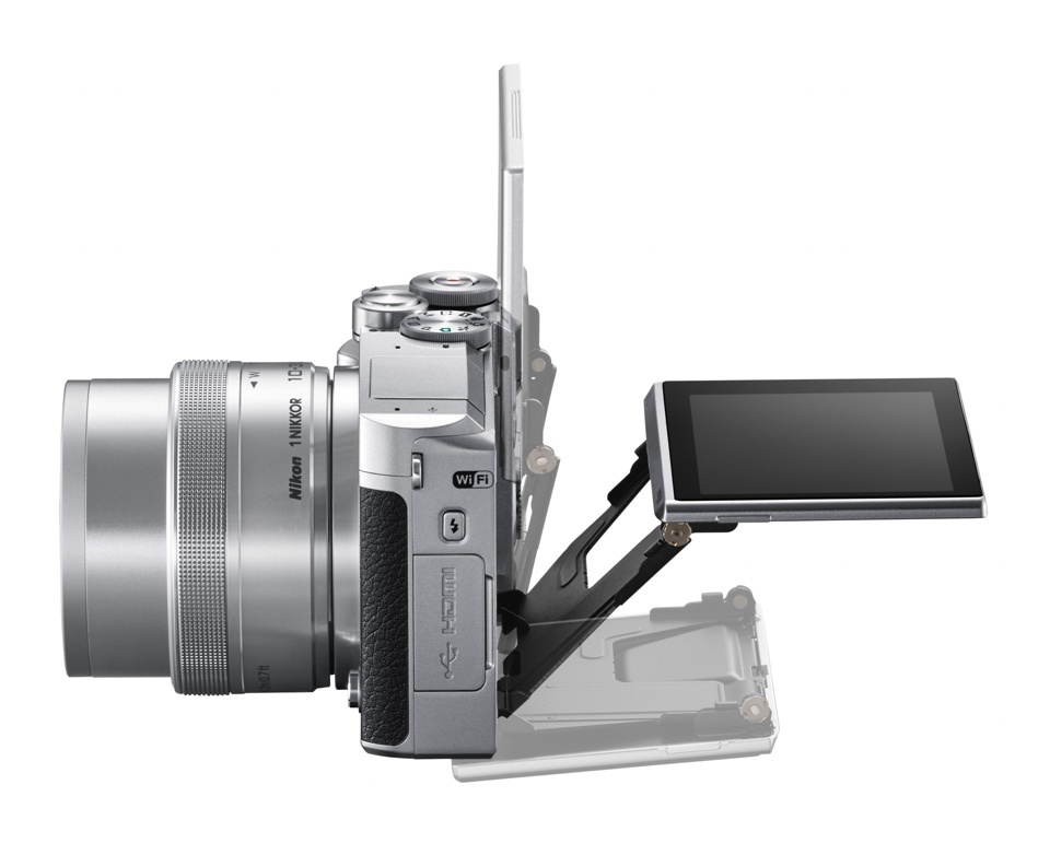 یک لغزندهی ثانویه هم به کاربر امکان میدهد تنظیمات دیگر را انجام بدهد. صفحه نمایش دوربین برای نخستین بار متحرّک است و میتواند تا ۱۸۰ درجه بچرخد تا کاربر بتواند به راحتی عکس سلفی بگیرد، آن هم با کیفیت بالایی که این دوربین در اختیارش میگذارد. طراحی و ساخت این دوربین به گونهای است که برخلاف دوربینهای قبلی سری J، به راحتی در دست قرار میگیرد. طراحان نیکون برای نمای کلی این دوربین از ترکیب رنگهای سیاه و نقرهای استفاده کردهاند که ظاهری کلاسیک به این دوربین داده است.