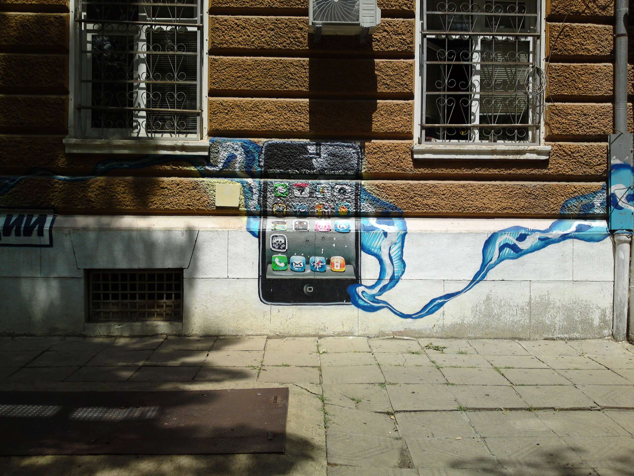 داستان تلاش برای پیدا کردن یک سیستم عامل لمسی مناسب بسیار جالب است که در آینده به آن خواهیم پرداخت. اول از همه بیایید به چند نمونه تصویر نگاه کنیم. اولین تصویر یک رندر گرافیتی از آیفون است، دستگاهی که به بحران سونی اریکسون دامن زد. درست است که این شرکت هرگز در حد و اندازه نوکیا موفق نبود؛ اما عملکرد نسبتا خوبی در دوران پادشاهی گوشیهای ساده داشت.
