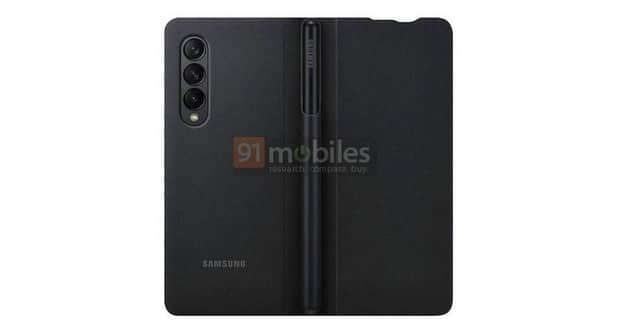 خبر منتشر شده بعدی متعلق به 91Mobiles است که گلکسی زد فولد 3 را در یک کیف محافظ چرمی نشان میدهد. سازندگان این کیف محافظ جای خاصی را در قسمت پشت لولای زد فولد 3 برای قلم اس پن در نظر گرفتهاند. این کیف محافظ به گونهای ساخته شده است که هم میتواند S Pen را در خود جای دهد و هم به راحتی و هماهنگ با گوشی در حالتهای مختلف قرار گیرد.