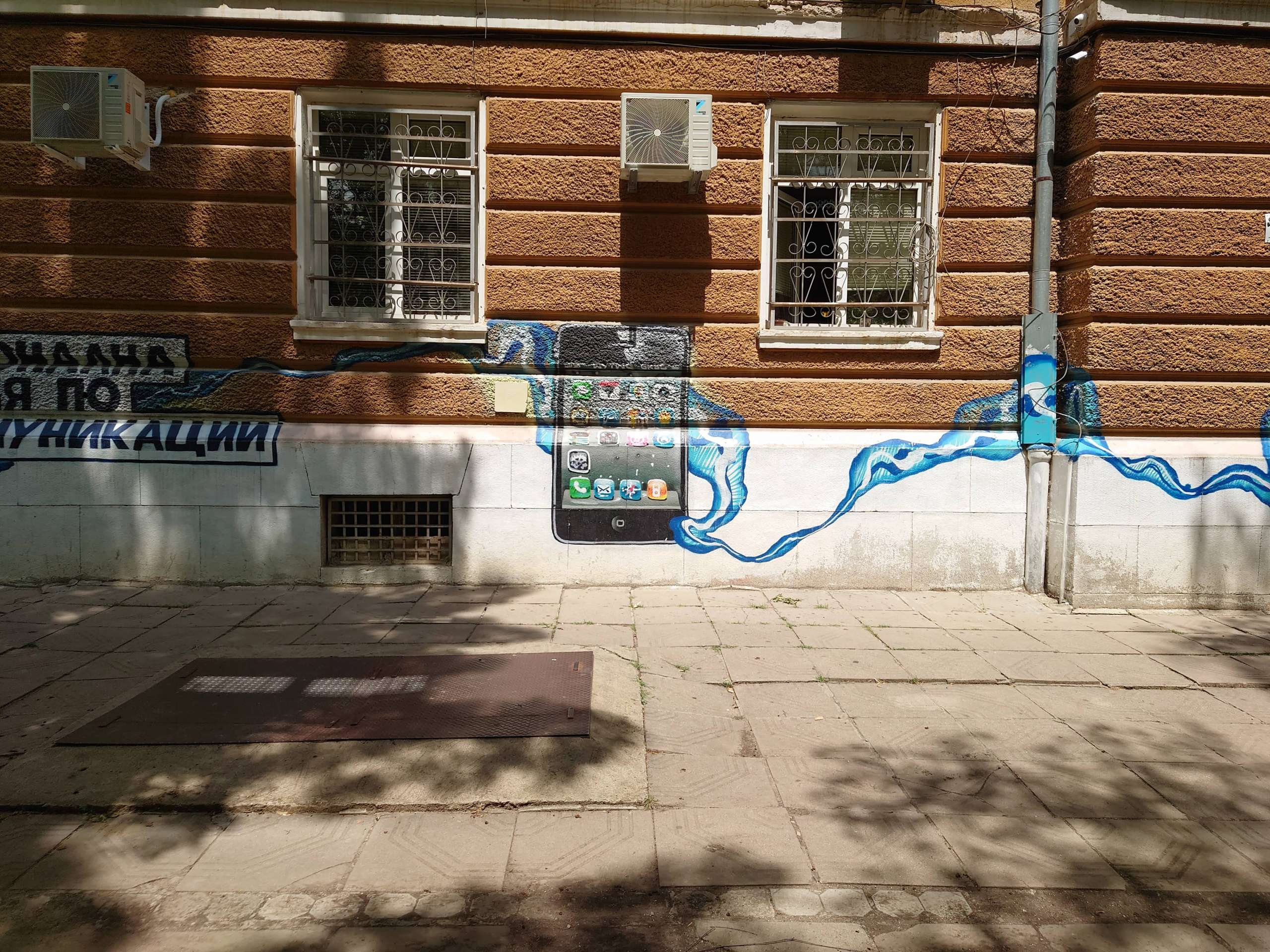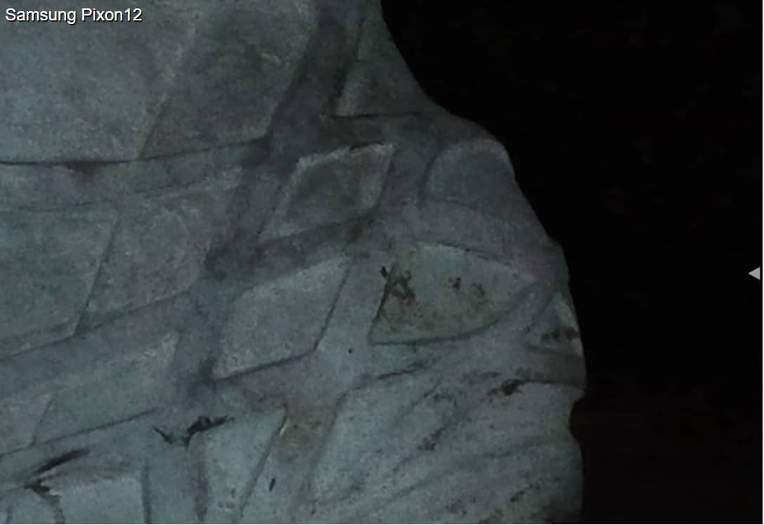 در تصویر مربوطه، یکی از دیوارها توسط یک لامپ نسبتا ضعیف و زرد رنگ خیابانی روشن شده و دیوار دیگر در سایه قرار گرفته است. روی هر دو دیوار نیز طرحهای تزیینی خاصی قرار دارند. البته این طرحها در تصویر ثبت شده توسط Satio نیز تا حدودی مشخص هستند؛ اما برای بررسی تصویر معیار بهتر است نگاهی به Xperia 1 Mark 2 بیندازید.