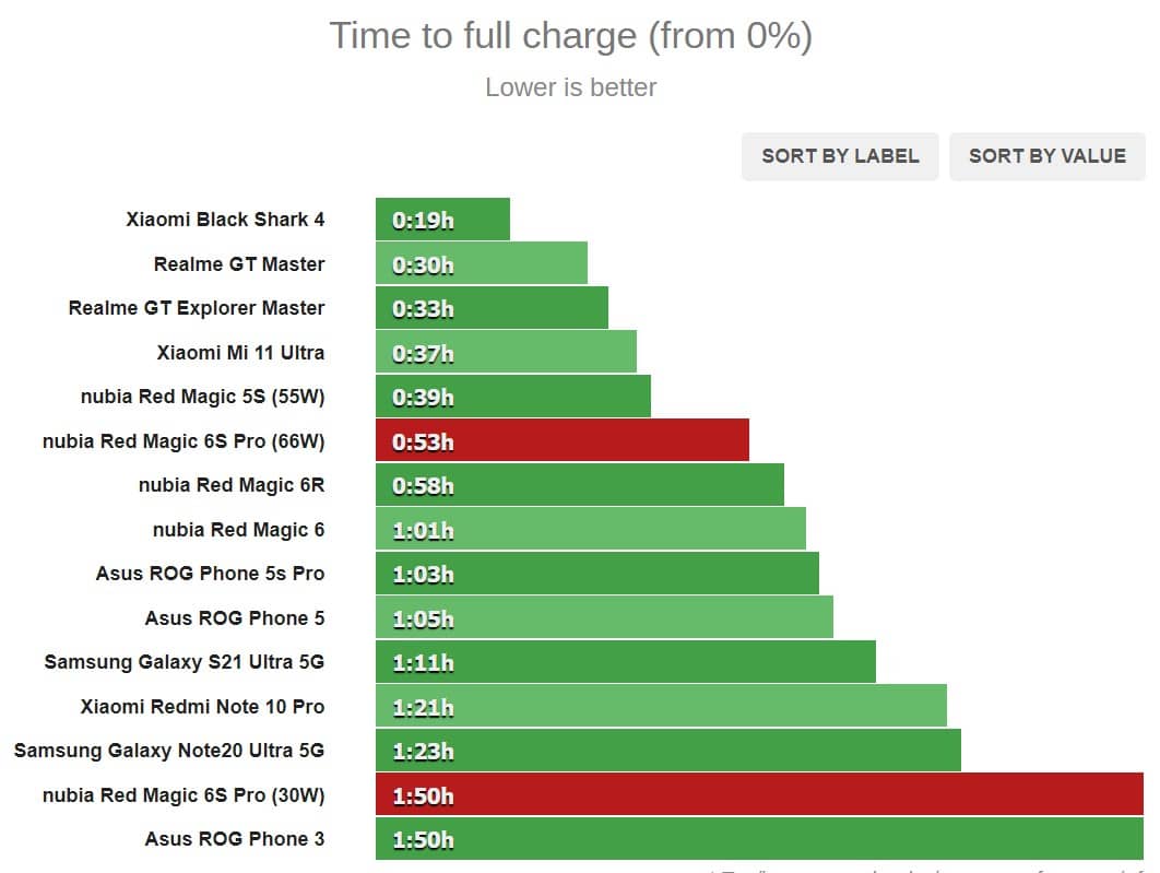اگر یک شارژر ۶۵ وات در خانه دارید که بهتر است از آن به جای شارژر قرار گرفته در جعبه نوبیا رد مجیک 6 اس پرو استفاده کنید. در غیر اینصورت خرید یک شارژر جدید میتواند سرمایه گذاری معقولی باشد زیرا میتواند باتری گوشی را در تنها ۵۳ دقیقه از ۰ به ۱۰۰ برساند.