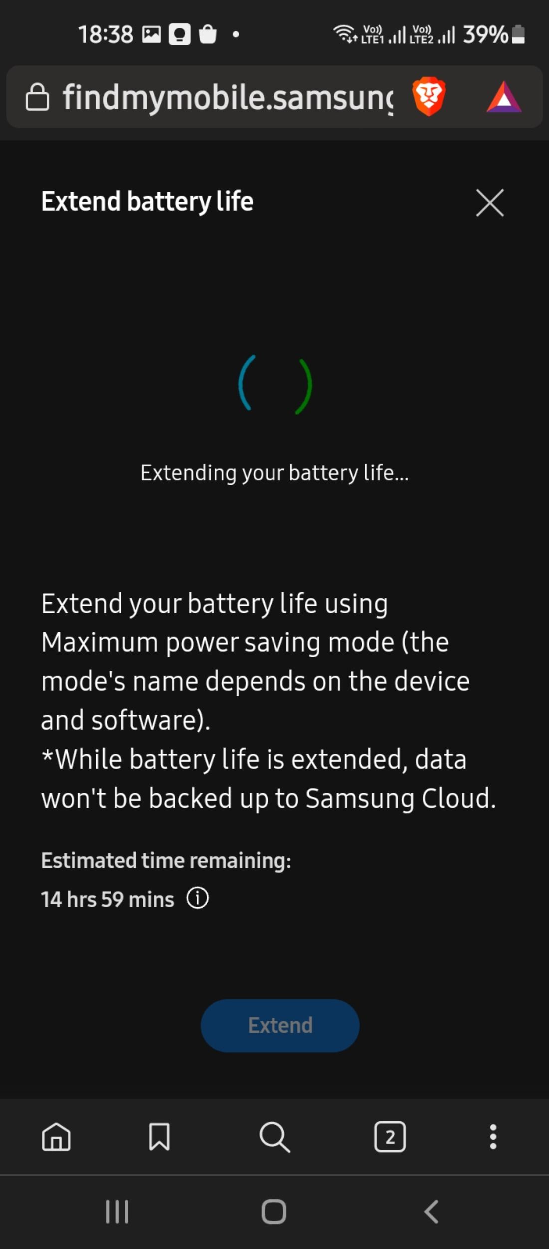 - پس از ورود به وب سایت در قسمت منو روی Extend Battery Life کلیک کرده و سپس گزینه Extend را انتخاب کنید تا حالت صرفهجویی در مصرف انرژی فعال شود.