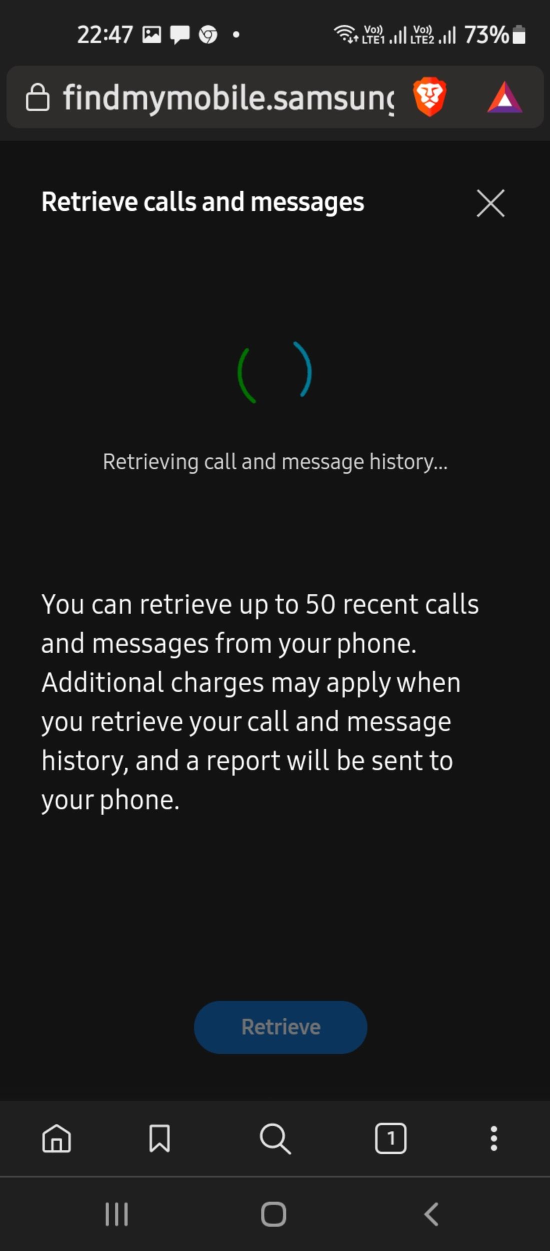 - در پنجره تأیید ظاهر شده، Retrieve را انتخاب کنید. با انجام این کار میتوانید به پنجاه تماس و پیام اخیر خود دسترسی داشته باشید.
