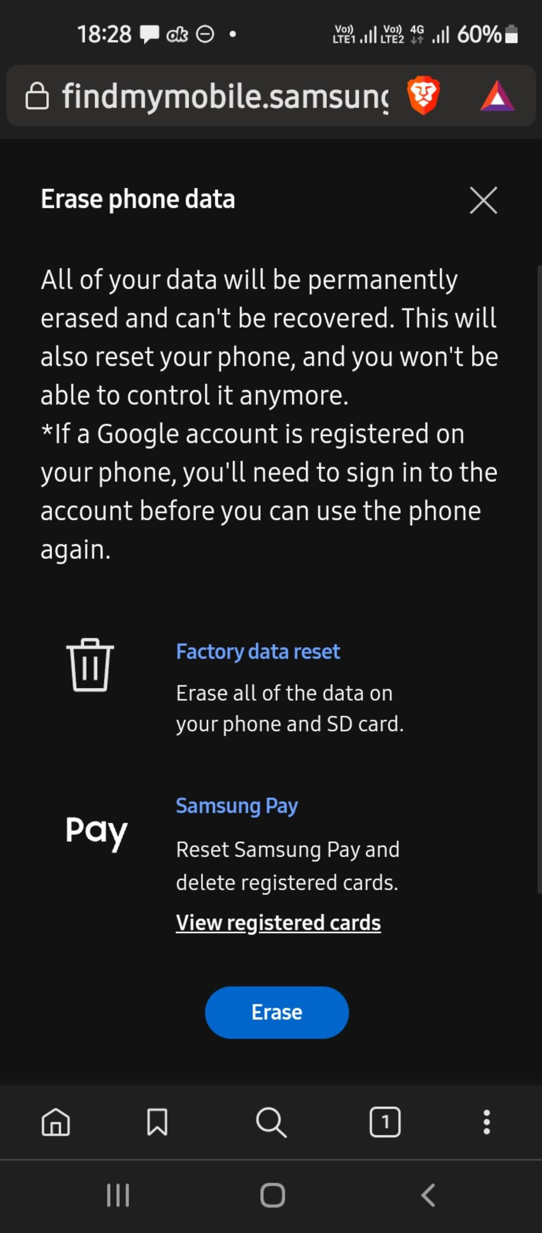 اگر روزی موبایل خود را گم کنید، اصلاً مایل نیستید که شخص دیگری به اطلاعات شخصی شما دسترسی پیدا کند. اکیداً توصیه میشود که تمام دادهها را پاک کرده و هرگونه اطلاعات حساس را از دستگاه خود حذف کنید.با استفاده از گزینه Erase data در ویژگی Find My Mobile شما قادر خواهید از راه دور گوشی خود را به تنظیمات پیش فرض کارخانه برگردانید.