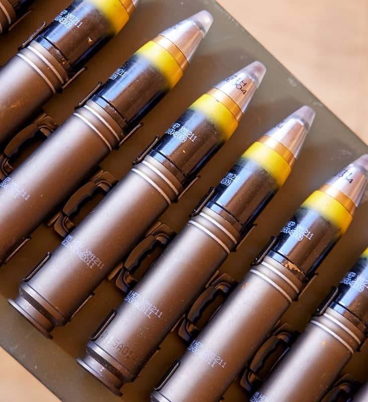 توپ اصلی مورد استفاده برای شلیک این گلوله نیز M230LF است که روی سامانه پدافند کوتاه برد و خودکشش M-SHORAD نصب شده است. این سامانه یک برجک متحرک مسلح به پرتابگر 4 عددی موشکهای پدافندی FIM-92 استینگر (Stinger) با هدایت آشیانه یابی فروسرخ، دو موشک ضد تانک AGM-114L هلفایر لانگبو (Hellfire LongBow) با هدایت راداری فعال، یک توپ M230LF و یک تیربار چندمنظوره 7.62 میلیمتری M240 دارد. وظیفه آن نیز مقابله با هواگردهای بسیار کوچک تا بزرگ و همچنین اهداف زمینی است. برای این کار نیز به چندین رادار و سیستمهای الکترواپتیکال مجهز است تا کشف و کنترل آتش را به صورت خودکار انجام دهند.