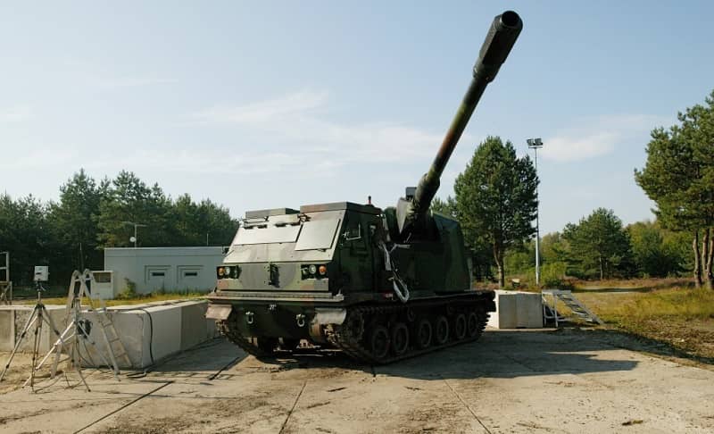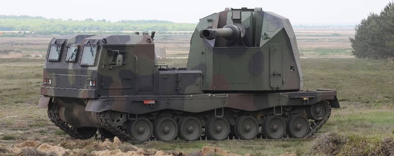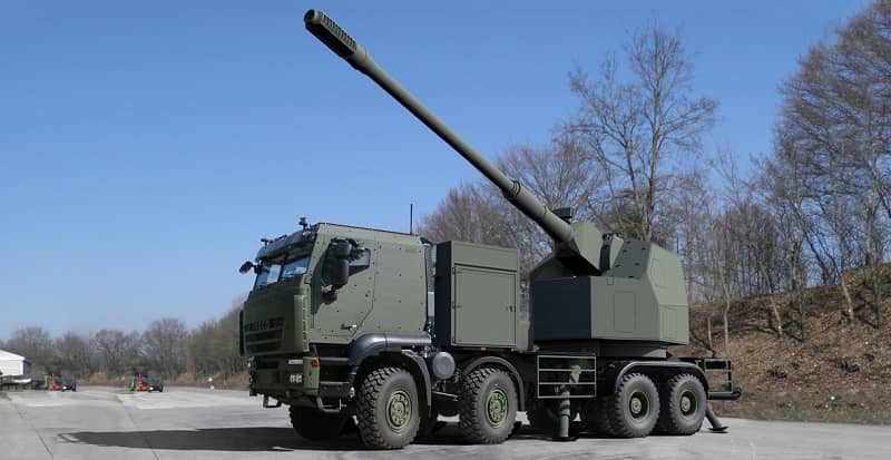 هویتزر RCH 155 با برجک تیربار برافراشته و پوشش استتاری باراکودا