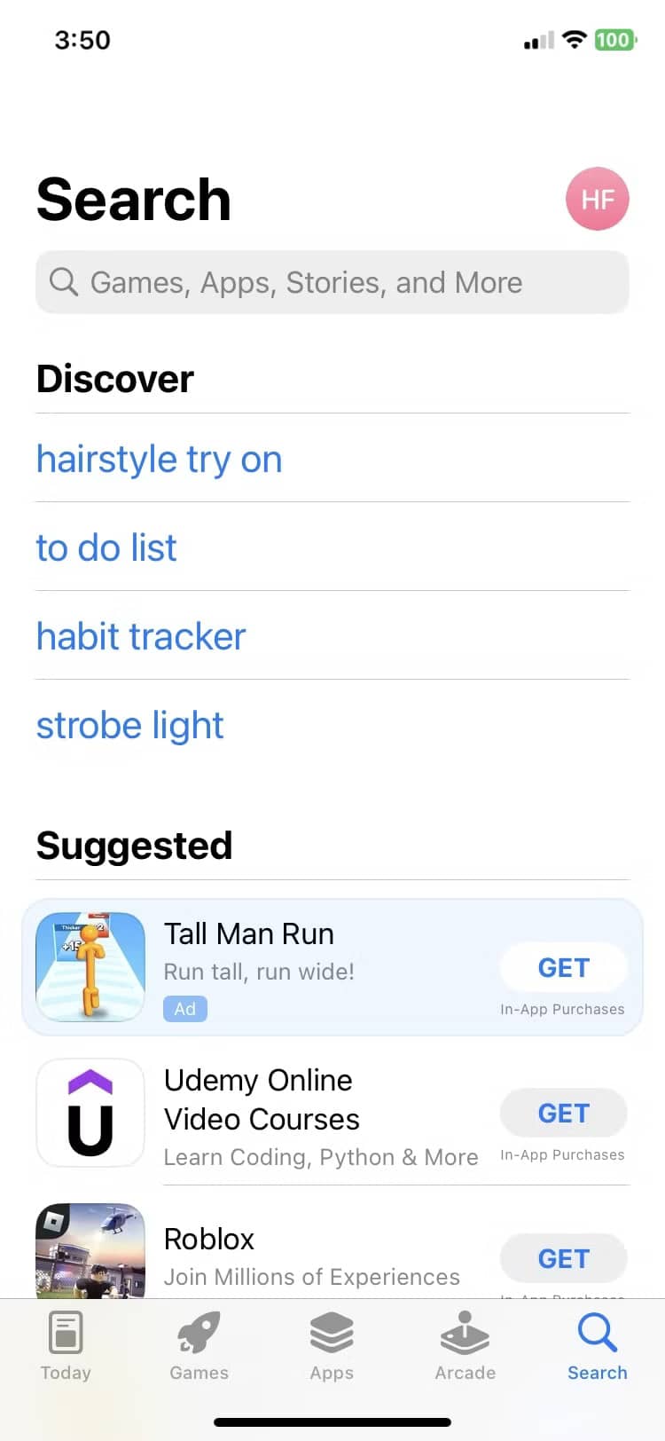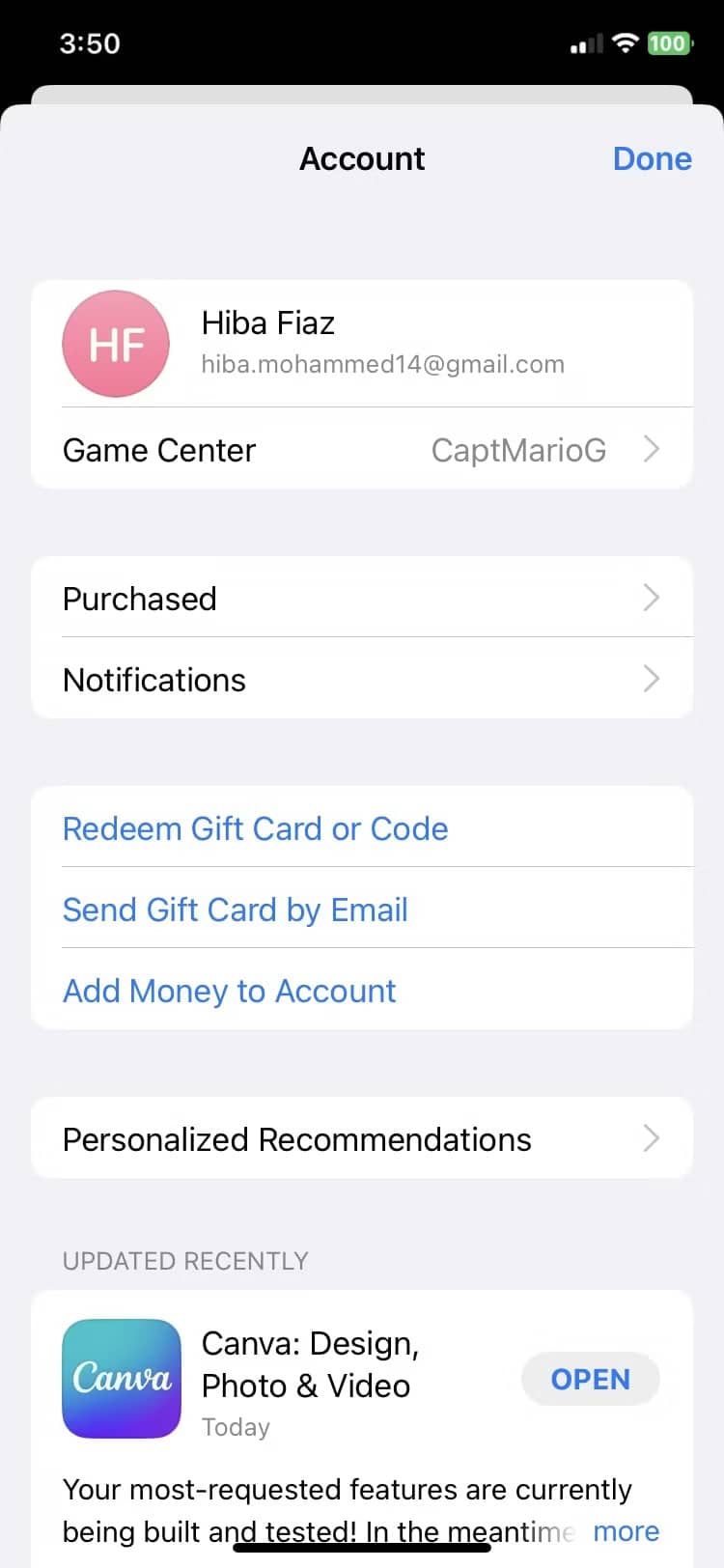 - اپ استور را باز کرده و بر روی آیکون پروفایل خود در قسمت بالا و سمت راست ضربه بزنید.