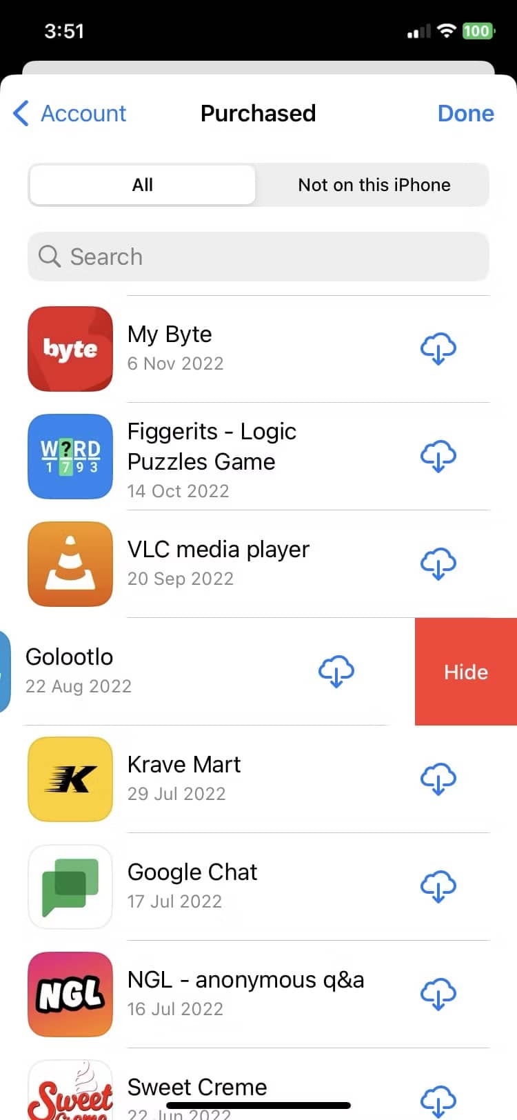 پنجمین روش مخفی کردن اپلیکیشن های آیفون به هیچ وجه برنامه مورد نظر را از هوم اسکرین حذف نمیکند؛ بلکه در عوض آن را از نتایج جستجوی اپ استور پاک میکند؛ بهطوری که نتوان با جستجو در میان خریدها اپلیکیشن مربوطه را پیدا کرد! روش انجام این کار به صورت زیر است: