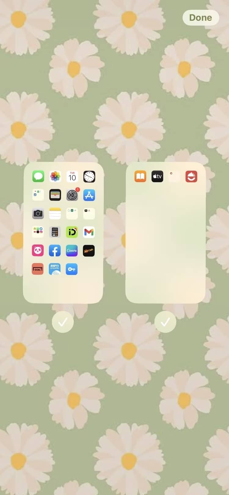 - بر روی تیک زیر صفحه هوم اسکرینی که مایل به مخفی کردنش هستید ضربه بزنید. ناپدید شدن تیک پایین هریک از هوم اسکرینها به معنی مخفی شدن آن است.