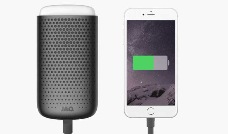 شارژر Jaq، کارتیجی دارد که با واکنش های شیمایی آب و نمک موجود، انرژی را تامین میکند و انرژی معادل ۱۸۰۰ میلی آمپر تولید میشود. کارتیج ها قابل تعویض هستند و به این وسیله انرژی کاملا پاک تولید میشود. همچنین به دنبال آن، کارتیج ها قابل بازیافت هستند.