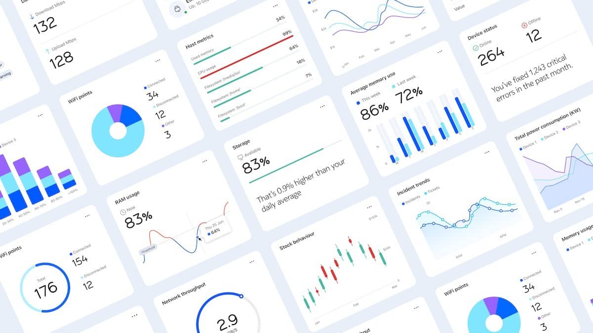 بهعنوان مثال، این رابط کاربری از المانهای خاصی بهره میبرد که به کمک آنها میتوان مطابق تصاویر زیر، داشبوردهای پیچیده تحت وب طراحی کرد.