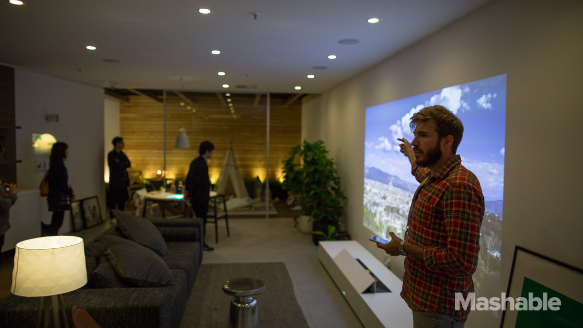 از جمله امکانات مهم اضافه شده به رابط کاربری Life Space همین پروژکتور کوتاه برد است که سونی مانور زیادی برروی آن میدهد. این دستگاه به راحتی قابل حمل از اتاقی به اتاق دیگر است و میتوانید آن را برروی میز یا سقف (برای پخش برروی سقف) نتظیم کرده و با قرار دادن آن در کنار دیوار، تصاویری با قطر ۲۰ تا ۵۰ اینچ را با کیفیت ۴K شاهد باشید. پروژکتور جدید سونی میتواند هنرهای تعاملی، عکس و فیلم یا اسناد موجود برروی اسمارتفون شما را به تصویر بکشد.