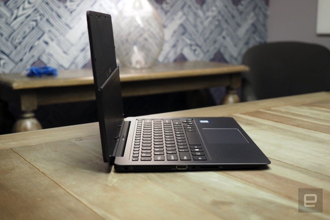 برخلاف دیگر نمونه های ویندوزی بازار که از لولای ۳۶۰ درجه ای استفاده می کنند، لولای VAIO Z انعطاف کمتری داشته و حالت تبلت به خود نمی گیرد، به گونه ای که بخش زیرین دستگاه نقش پایه را برای دیوایس ایفا می کند. این قابلیت را پیش تر در سری لپ تاپ های VAIO Flip دیده بودیم که سه سال از زمان عرضه آن می گذرد. وایو صفحه نمایش با کیفیت و پردازنده قدرتمند دستگاه را با طراحی بسیار باریک همراه کرده تا کاستی خود را در قسمت لولا جبران کند.