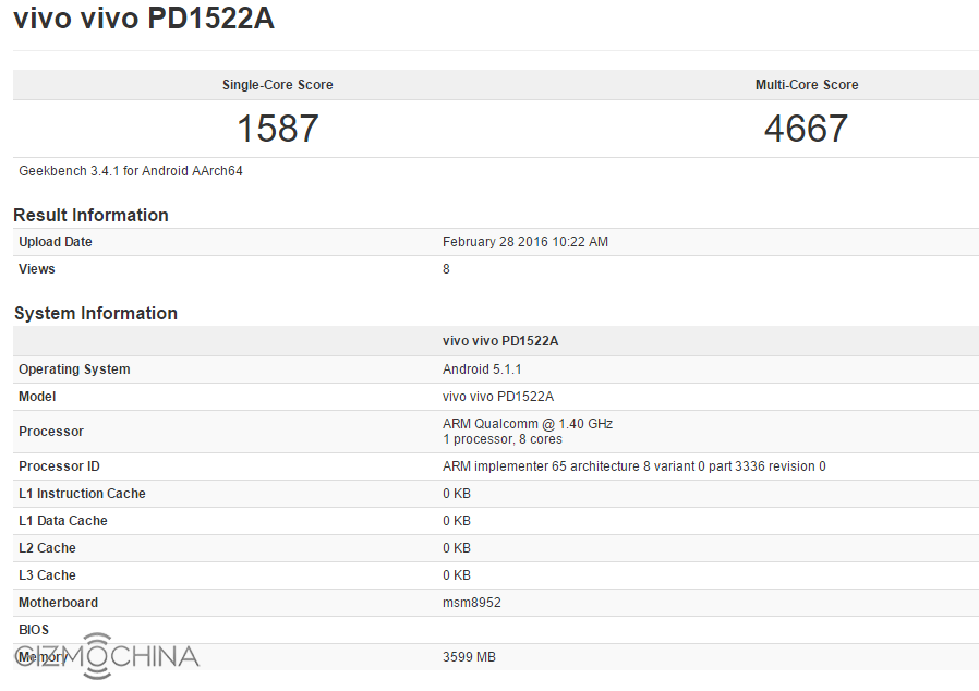 PD1522A شماره مدل ثبت شده در بنچمارکها منسوب به برادر کوچکتر XPlay 5 است که در تستهای تک هسته و چند هستهای Geekbench با کسب امتیازات ۱۵۸۷ و ۴۶۶۷ عملکرد خوبی از خود نشان داده است.