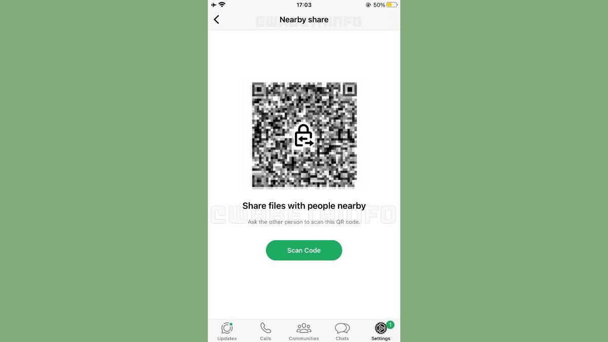 نسخه آیفون برای آغاز فرایند اشتراکگذاری فایل نیازمند اسکن کد QR است، چرا که از روش تشخیص دستگاههای نزدیک پشتیبانی نمیکند.دلیل تغییر واتساپ به کد QR در iOS مشخص نیست. منبع این گزارش، این احتمال را مطرح کرده که این امر میتواند یک لایه امنیتی اضافی برای جلوگیری از رسیدن فایلهای مخرب به گوشی هوشمند شما باشد. نظریه دیگری نیز وجود دارد که این تغییر به دلیل محدودیتهای iOS است.