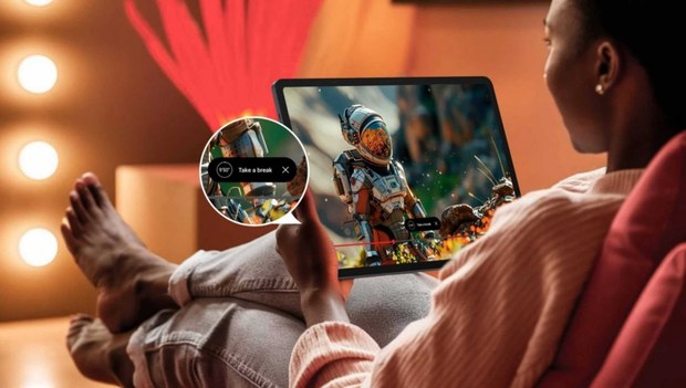 این تبلت با نمایشگر 14.3 اینچی NxtPaper 3.0، تجربه خواندن مشابه با یک کاغذ الکترونیکی را ارائه میدهد. این نمایشگر با فیلتر کردن 61 درصدی نور آبی مضر صفحه، تصاویر واضح و رنگهای کامل را حفظ میکند.